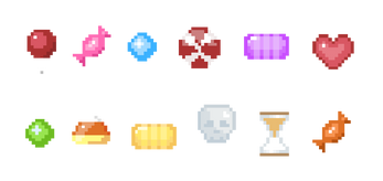 This is a simple cute 16x16 platformer pixel art candy world asset pack with obstacles, traps, and many other tiles in cute colors.